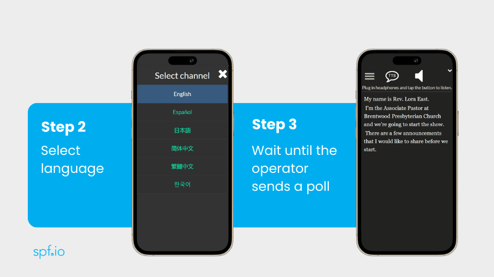 Conduct multilingual polls with spf.io so people can get questions, motions and vote in their own language. This step by step guide shows how to create and send polls to your audience. Instructions for audience members on how to vote are also provided.